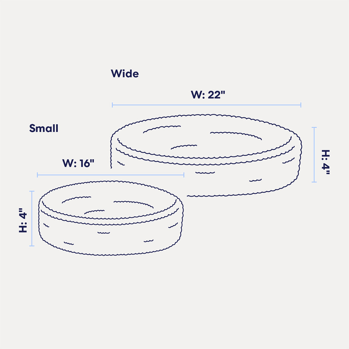 • Dimensions: Small: 16”D x 4”H, Wide: 22”D x 4”H