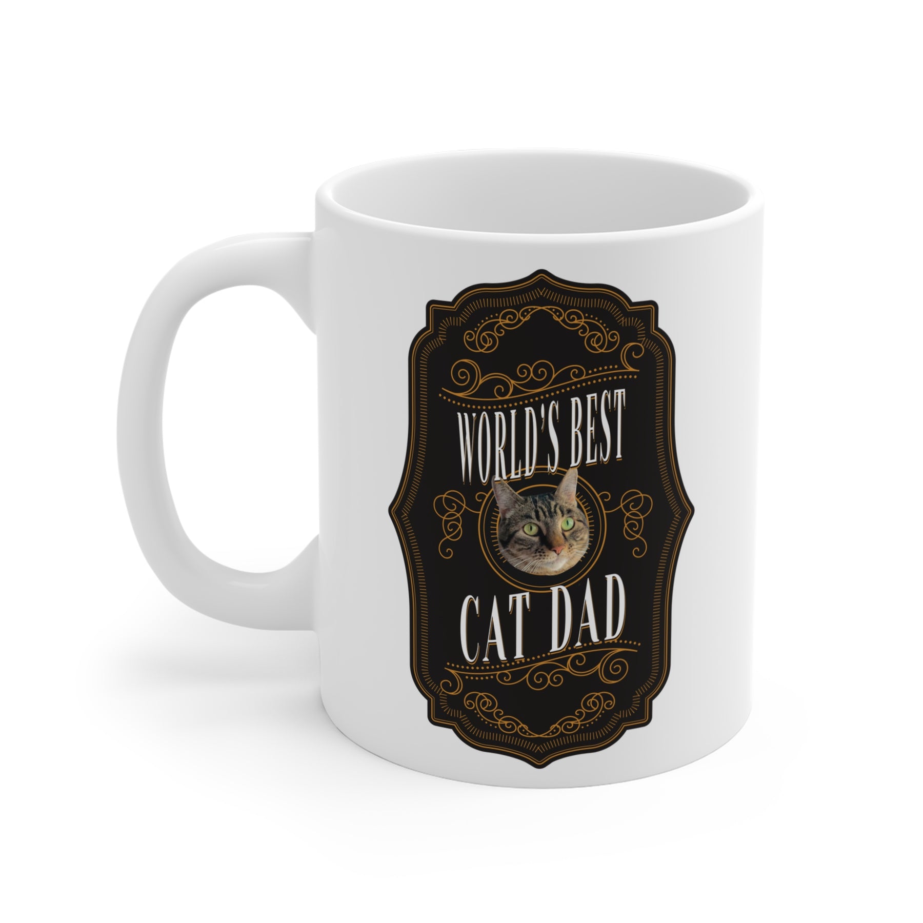 Give the Cat Dad in your life a gift he will actually use and love. This mug features your cat’s face in a bold whiskey label inspired design with the phrase “World’s Best Cat Dad.” Perfect for coffee, tea, or hot cocoa, it’s dishwasher and microwave safe, and guaranteed to make every sip a little more legendary.