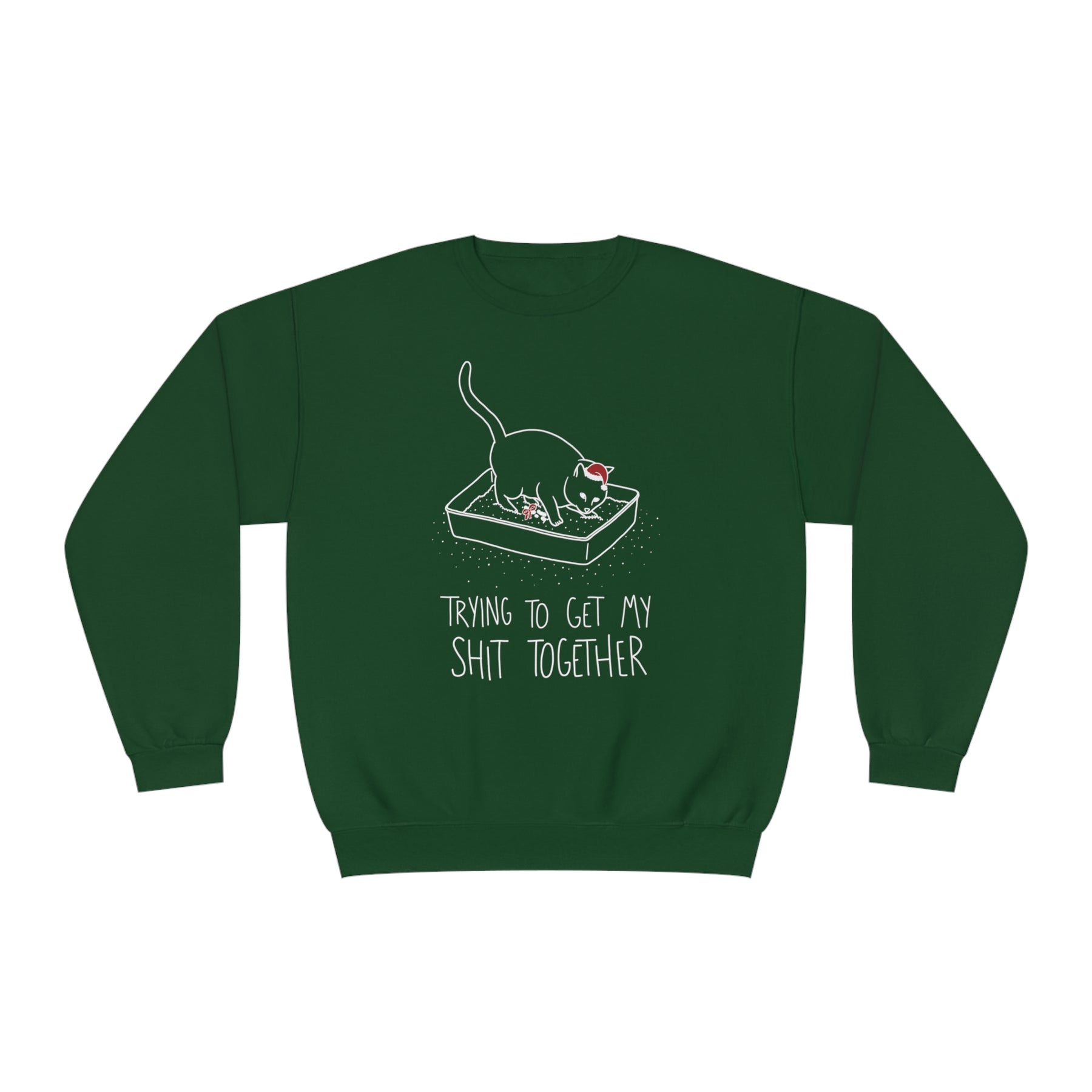 This shirt will tell the world that this shit will get got. Yeah, you may not be purr-fect, but at least you’re trying to get your shit together!Crafted from an ultra-soft blend of NuBlend® pill-resistant polyester and sustainably sourced USA-grown cotton, this Christmas cat sweatshirt will keep you warm without being too heavy or bulky – because baby it’s cold outside!