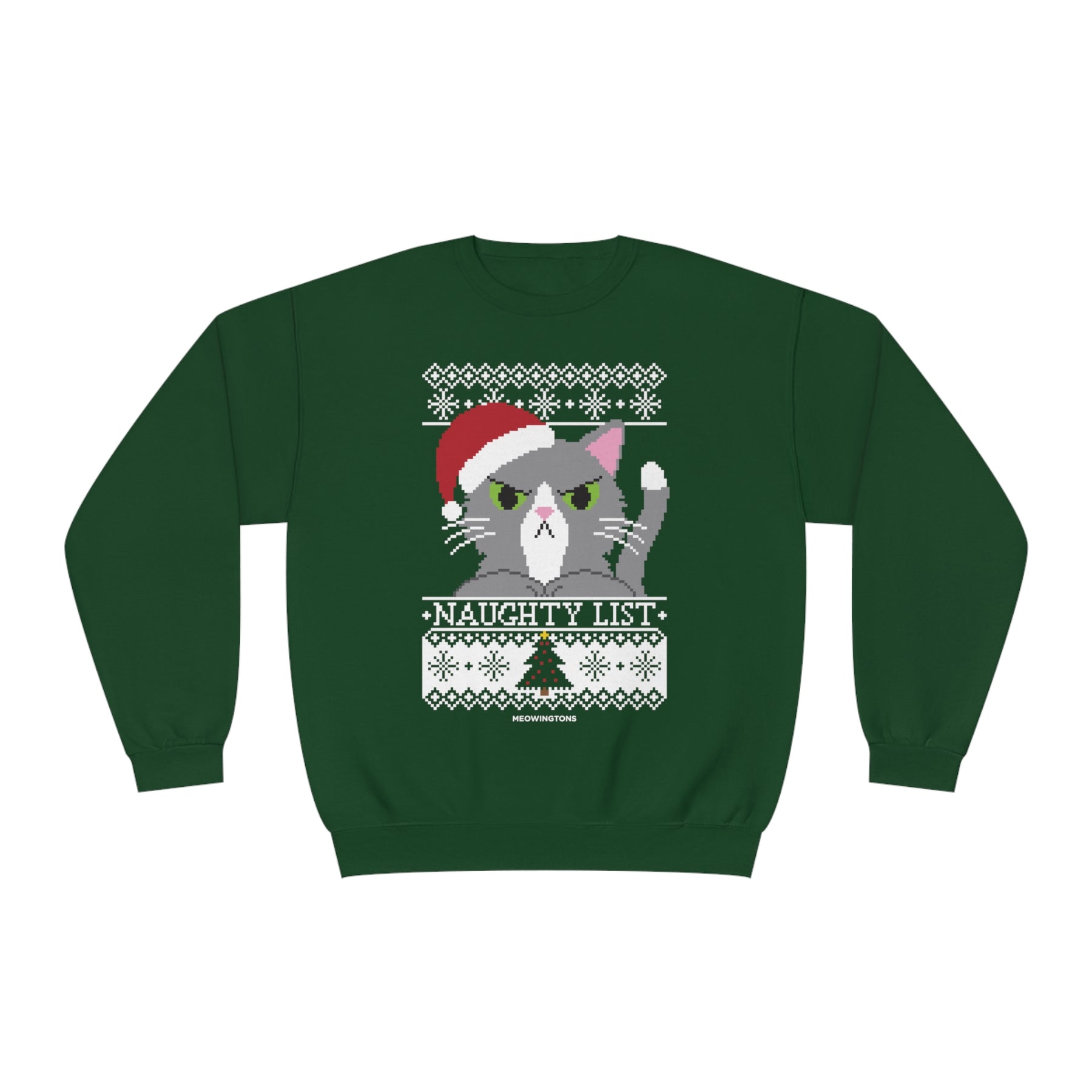 Available in sizes up to 3XL, the Naughty List Cat Crewneck Sweatshirt is perfect for cat lovers who want to make a statement this holiday season. Wear it to holiday parties, family gatherings, or just a cozy night in—you’ll be the cat’s meow wherever you go.